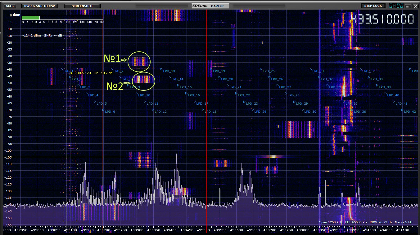It is possible to separate one of them from the other only on the receiver’s SDR waterfall by their characteristic pattern.